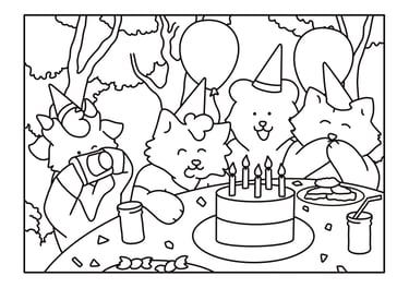We are kicking this free monthly page off with November which happens to be the Merry Foxes birth month! Please enjoy the Fox and friends enjoying a birthday banquet in the woods.